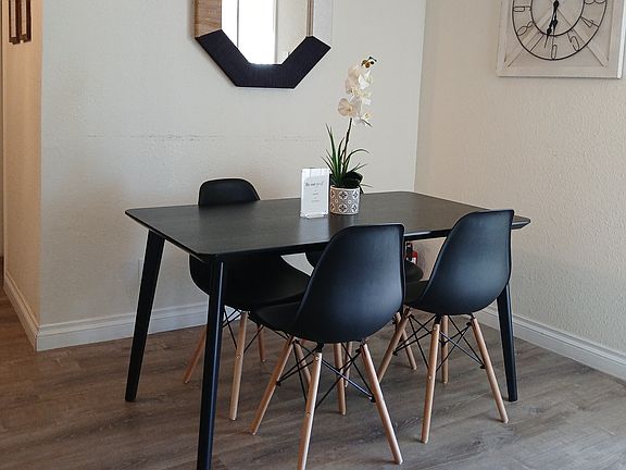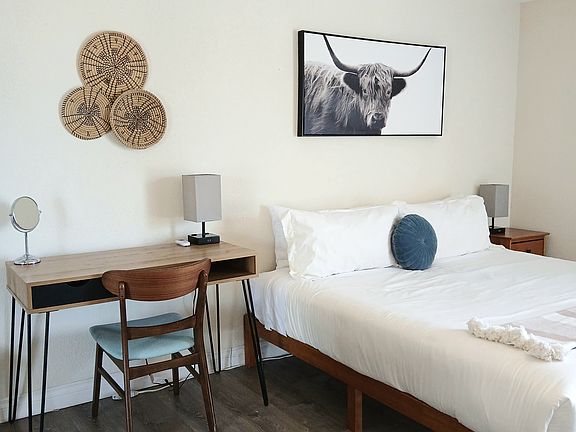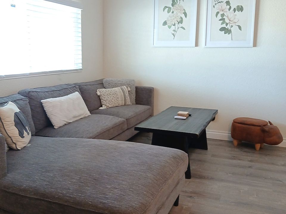 Fully furnished, open floor plan. The main bedroom has a king-size bed and the other bedroom has 2 twin-size beds. 2 smart TVs and a private laundry room on site. 2 other dwellings on the property. This is a stand-alone house, not an apartment. There are no shared common walls to any other dwellings on site. The owner pays for trash and the renter is responsible for the power and internet bill. A $250 pet deposit is refundable minus any damages incurred at the end of the lease. Minimum 30-day lease.