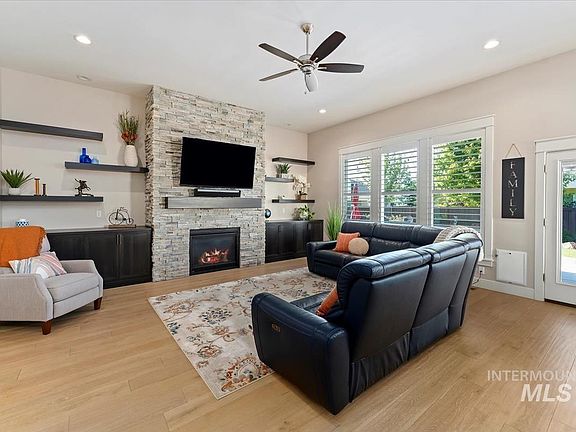 This stunning single-level home, meticulously maintained by it's original owners, boasts numerous upgrades and a versatile layout. Situated on a premier lot in the beautiful Bainbridge community, this residence has access to two pools and a park. With 3 bedrooms plus a 4th oversized bedroom currently used as an office, a tech area, 3 baths, and a spacious 4-car garage, this property offers exceptional comfort and functionality. Noteworthy upgrades include an epoxy-coated garage floor, custom cabinets, and it's own air conditioning unit to keep you cool while working on hot summer days. The kitchen is a cook's dream, with upgraded appliances and countertops, and the large eating area and great room are perfect for families or those that love to entertain. The beautifully landscaped, north-facing backyard, features an extended patio, garden boxes and ample space for your outdoor gatherings. This home is truly better than new, with too many upgrades to list and turnkey ready, with all major projects completed.