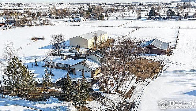 So many possibilities! NO HOA. Bring your extended family, horses, car collection, RV's, or in-home business! Unique, versatile, country home on 8 acres of fully fenced, irrigated, pastureland in SW Loveland.