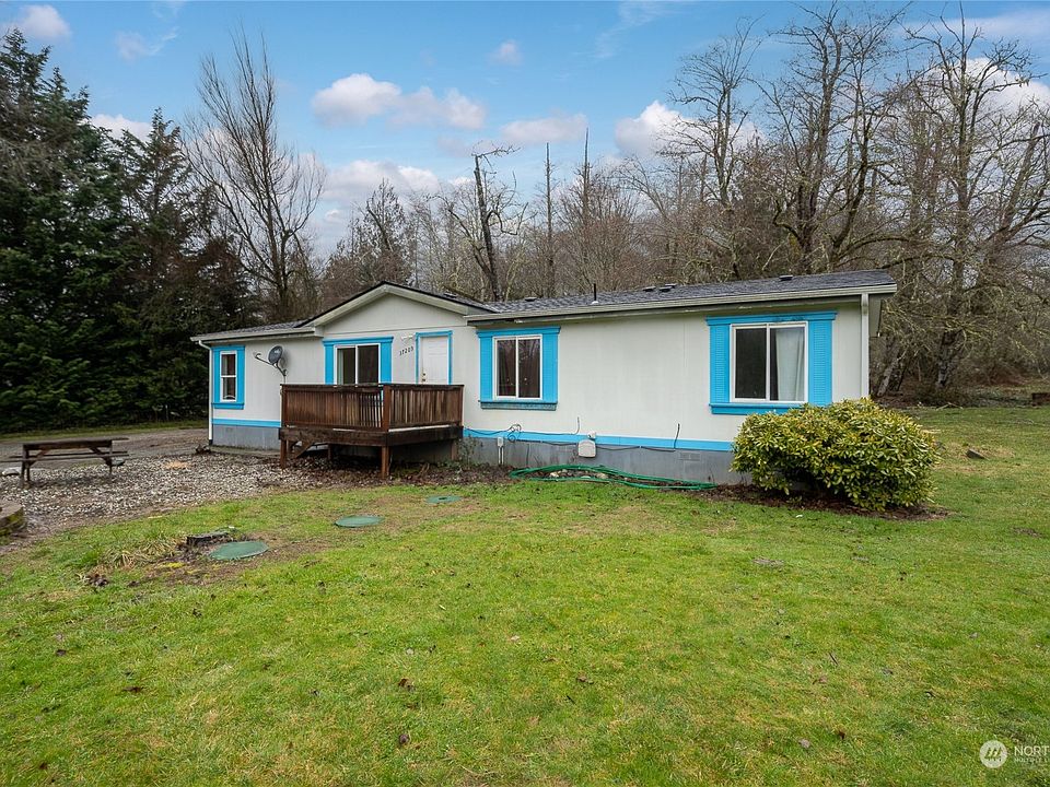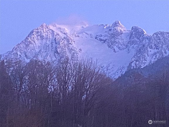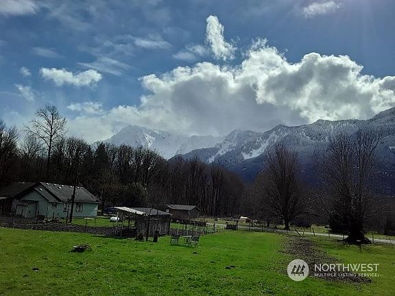 The view of Whitehorse Mountain is incredible. Panoramic view of the mountain and it's glacier, right out the front door. 4 bedroom 2 bath double wide with 1512 Sqft on shy 5 acres. A wall separates the 3 bedrooms and the recreational room from the rest of the house. 400 amp service off street, so 200 amps available if you want to put in a garage/shop. Well and septic. Level lot with excellent soil for growing. Apple tree, grapes, raspberries, and king blackberry. Deer come through daily and eagles are seasonal. Just 2 miles off 530