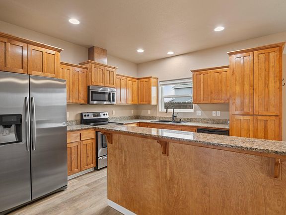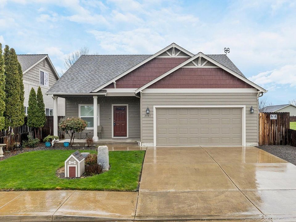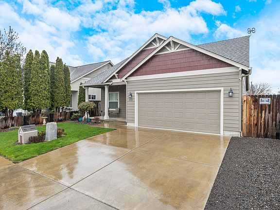Discover the charm of this 3-bedroom, 2.5-bathroom two-story home in White City, featuring a newly painted exterior and a spacious open floor plan with 9-foot ceilings on the lower level, complemented by LVP flooring. The primary bedroom on the first floor offers a walk-in closet and an en-suite bathroom. The kitchen is equipped with custom cabinets, a dual sink, granite countertops, and stainless steel appliances, including a refrigerator and dishwasher. The adjacent dining area leads to a welcoming patio, ideal for social gatherings. The second floor houses two additional bedrooms and a full bathroom, with carpeting for added comfort. The home boasts a dual-zone HVAC system, ensuring optimal comfort for both the upstairs and downstairs areas. The property also includes a finished garage with storage, a fenced yard, and a beautifully landscaped veranda. Cat owners will appreciate the unique ''Catio,'' perfect for your pet!