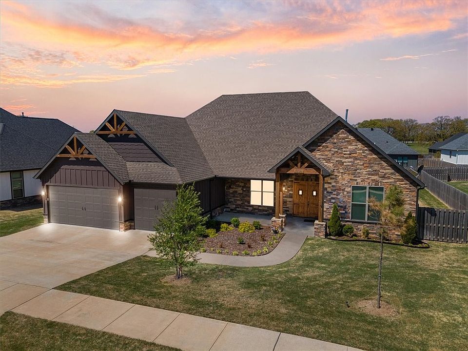 Luxury living at its finest! This stunning Bentonville home offers 4 bedrooms, 3.5 bathrooms, plus an office, and is full of upgrades that will make you feel right at home. The gourmet kitchen is a chef's dream with a large island with quartz countertops, built-in fridge, 5-burner stove, and double oven. The central vacuum and spray foam insulation and surround sound are just a few of the many upgrades you'll enjoy in this home. The primary suite is a spacious retreat with a spa-like bathroom and custom built-in dressers in a walk-in closet. The 3-car insulated garage offers ample storage space as well.