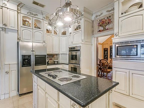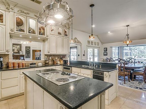 Gorgeous hilltop gated estate on over 8 acres! Enter up the winding drive through the scattered oak trees to the beautiful chicago brick home! The french inspired home has been updated w fresh paint, new appliances, & granite counters. Outstanding marble floors, crown molding, & vaulted ceilings throughout. Gourmet kitchen. Large dining room w amazing picture window. Beautiful living area w handsome fireplace. Expansive master suite. 2nd living would be a great mother-in-law ste. The entire back side of the home cased in windows to let in the great outdoors. Enjoy entertaining at it's finest w a sparkling pool & gazebo, open patio, & pavilion w built-in brick smoker. Brand new 4 stall barn w storage area.