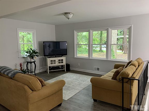 This home sits on a large private wooded lot in an established neighborhood, located in the city of Raleigh but not included in the city limits. This is a split foyer home with 4 bedrooms and 3 bathrooms. Upper level has 3 bedrooms, 2 bathrooms, kitchen, dining room, and living room. Lower level has a complete apartment. It has 1 BR, 1 BA, living/dining area and full kitchen. This home has been fully updated. There is also a unfinished part of the basement. This home has 2 fireplaces. Home Warrany Incl.