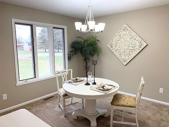 Remodeled home in the Village of Cherry Valley. Fully exposed ranch has laminate flooring throughout entry, great room with vaulted ceiling and fireplace, sliding door out to large deck overlooking lots of green space. Eat-in kitchen with granite, tile backsplash, new stainless steel appliances, and bay window area. There is a formal dining room and living room. The master bedroom with updated private bath that features granite vanity. The bedrooms are convenient to the hall bath. All new carpet, 6 panel doors throughout & neutral paint colors. Great fully exposed lower level with slider onto deck, rec room, wet bar and 4th bedroom. Lots of storage area, and low maintenance exterior. New roof. agent owned.
