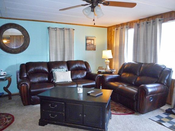 Beautiful country home with awesome views. Newly painted, new carpet, well kept interior and exterior. 24 X 44 Doublewide. Lots of perennial flowers in landscaping. Well maintained home. Sit on back deck and watch beautiful sunsets *Can be purchased fully furnished, just bring your clothes. Nice graveled driveway with plenty of parking. A/C was serviced summer of 2019. Nice barn for storage and workshop.