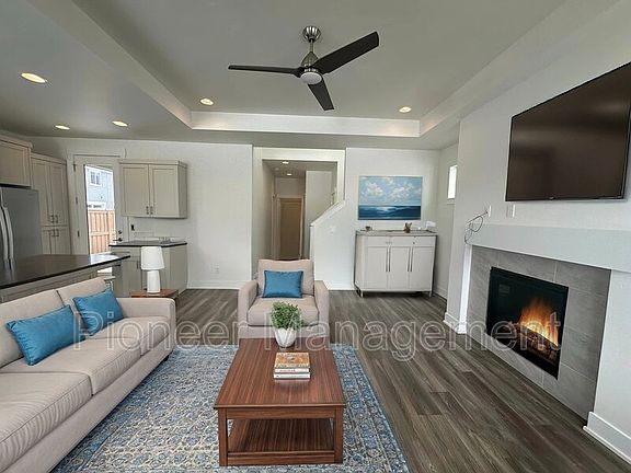 Discover this spacious 2010 sq ft modern and functional home at 3721 NE Petrosa Ave in Bend. Family and pet friendly, modern and fully equipped, single-family home! Featuring 3 beds, 2.5 baths, primary bedroom on the first floor, a large loft/family room upstairs, home office space, a roomy two car garage and an amazing community center with a gym & pool! This beautiful home has all the luxury features you're looking for. On the first level you'll find a light and bright open-concept main living area complete with nine-foot ceilings, a gas fireplace that turns on with the flip of a switch and half bath off the garage. The kitchen features solid surface countertops, all stainless steel appliances are included and quality, low maintenance, luxury vinyl plank flooring. Off the dining area enjoy your private covered patio and fully fenced side yard. The beautiful primary suite, complete with a large walk-in closet is also conveniently on the main floor as well the laundry and mudroom. Upstairs enjoy a spacious loft and two secondary bedrooms with a full shared bath. Unit is unfurnished All major appliances included! SS stove, SS refrigerator, dishwasher, washer/dryer, central heat and AC. HOA maintains the front yard. Unlimited access to brand new neighborhood community rec center including bookable private event space (hello, birthday parties and family gatherings!, gym and resort style pool, hot tub and splash pad!) Photo of the front of the home is the actual home. Additional photos of the home will be available and posted soon. Photos of the interior are currently of a similar staged model home. Tenant responsible for maintaining the private, fenced side yard. Tenant is responsible for all utilities. No smoking allowed. Pets permitted. $1,000 pet deposit, additional $30 per month pet rent.
