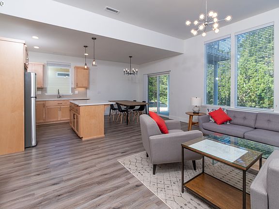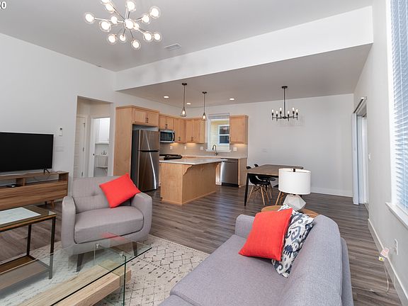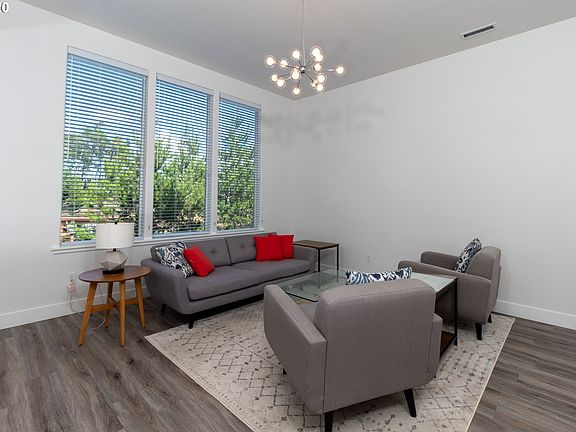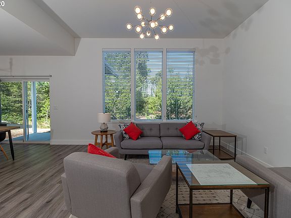 Chetco floor plan in the desirable, gated Sandpines East neighborhood. Partially furnished including washer & dryer. 11 ft ceiling in the living room with amazing view of the pond and trees next to the golf course. Featuring luxury vinyl plank flooring, quartz countertops, island, stainless steel appliances, gas stove, pantry & large utility room. Roll-in tile shower & tile floor in the master bath, tile shower in 2nd bath. Mini-split heat pump for heating & cooling.