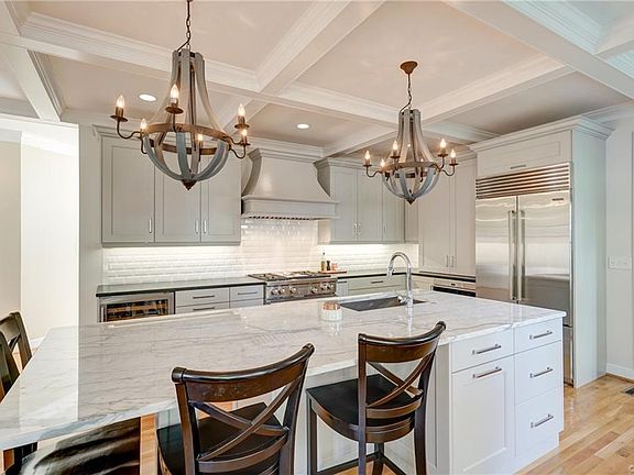 Designer Wolf & Sub-Zero kitchen with custom pale gray cabinets, marble countertops, center dining island with seating for four persons highlighted by pair of pendants plus pair of built-in pantries and beveridge refrigerator. Spacious casual dining area in bay window. French door to rear patio for convenient grilling, dining or entertaining by the fire pit! Fully fenced rear yard with playset, raised garden bed and lawn area. Expansive family room with gas fireplace, stone surround and flanked by bookcases and cabinets for storage. Remodeled powder room with wainscoting, pedestal sink & mirror. Large dining room open to living room. Huge master bedroom suite with new marble bath, free standing tub, separate marble shower and frameless door, double vanity with storage towers. Suite with private full bath with tiled tub/shower and walk-in closet. Guest suite with private bath access with double vanity. All bedrooms have walk-in closets and window shades. Walk-up attic and small walk-in attic. Newer HVAC, irrigation system and lush healthy lawn. Two-car garage, asphalt sealed driveway. Top rated schools and 5 minutes to Short Pump. Quick possession available.