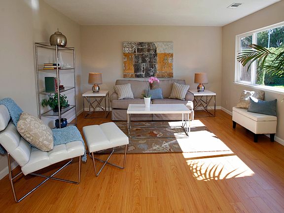Beautiful remodeled with a contemporary flair. Tasteful designer quality finishes in the gourmet kitchen & two new bathrooms. Open floor plan with sunny family room and eat-in-bar in kitchen. Beautiful green valley vista, makes this a great house to entertain. Wood floors throughout.