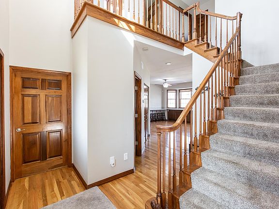 Custom Lake Front Home with Amazing Features! Step inside to gleaming hardwood flooring almost everywhere you look: 2-story entry, half bath, family room, laundry room, kitchen/breakfast area and formal dining room. Stunning view of the private access lake from any rear window! The kitchen boasts corian countertops, stainless steel front appliances and pantry. Large living room/formal dining room. The master suite boasts a woodburning fireplace, large walk-in closet w/custom organization built-ins. The private master luxury bath features a huge jetted tub in the hexagon bayed area, a separate shower and a double bowl vanity. The lower level features a media room with custom entertainment center, exercise room, bonus room, bedroom w/egress window and 3/4 bath. The two car + garage offers plenty of storage - above the garage doors and the full width of the rear wall, a workbench plus separate heating unit! Large low maintenance rear deck w/storage. "What an incredible home!"