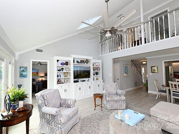 BEAUTIFULLY RENOVATED TOWNHOUSE ON THE GOLF COURSE AT ROCK BARN GOLF & SPA! Rarely available, this stunning end-unit townhome offers prime golf course living on the 11th hole of the Tom Jackson course. The home's southern exposure fills the living space with natural light through the oversized French Doors, opening to a spacious deck, perfect for relaxing and watching golfers pass by. Inside, no detail has been overlooked. Renovations include new flooring, crown and base moldings, plantation shutters, and custom-built cabinetry in the living area. The kitchen is a chef's delight, featuring a Cafe' six burner gas stove with double oven, softclose cabinetry, and updated lighting, ceiling fans, and fixtures throughout. Two skylights enhance the bright, open layout with a soft tinted glow of natural light. The two-car plus room for the golf cart garage is fully finished with epoxy flooring and custom cabinetry by Carolina Garage Works. Upstairs, you'll find two guestrooms, a full bath, and an expansive walk-in attic with abundant storage. With exterior maintenance handled by the HOA, this move-in ready home makes enjoying life at Rock Barn effortless! Membership to Rock Barn Golf & Spa is attainable. Membership includes 36 Holes of Championship Golf across 2 Challenging Courses. Member access and pricing at the 20,000 square foot European day spa and café. Eight court tennis complex with four hydro (clay) courts and four hard courts as well as pickleball courts. Members only fitness center with access to personal training and complimentary classes. Upscale locker rooms with lounge, steam rooms, and saunas. Olympic-size pool complex and exclusive aquatic fitness classes. Elegant 24,000 square foot Clubhouse with casual and fine-dining options and 7 private Dining, Meeting and Event Spaces with discounted room rental for Members. Seasonal casual dining at our golf course or pool complex cafés featuring Live entertainment, dining, and social events. Contact membership at Rock Barn for pricing information.