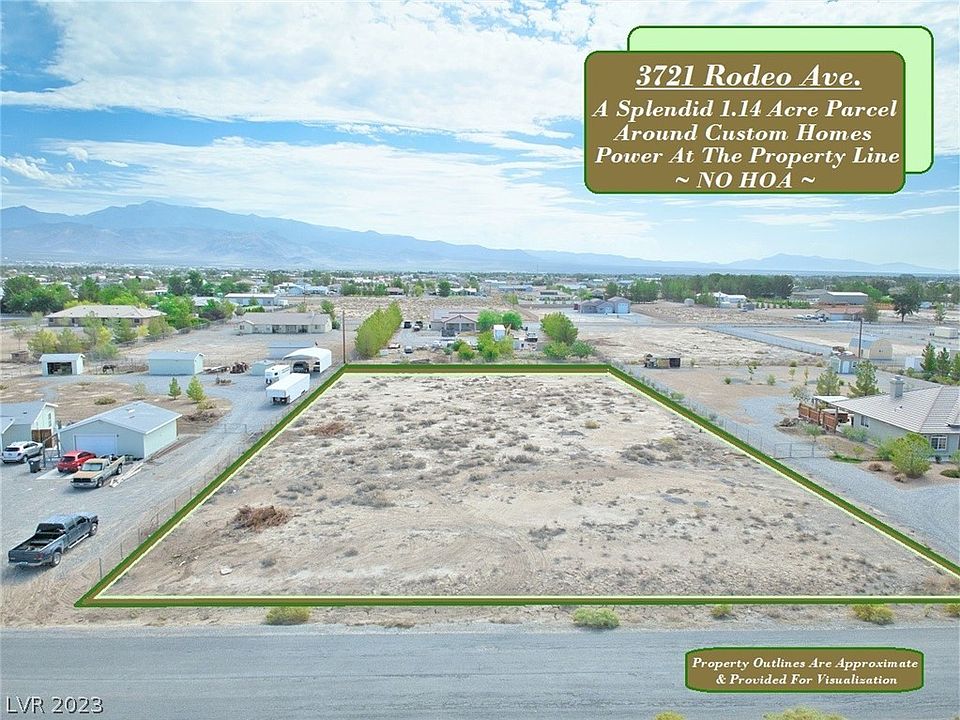 Welcome to 3721 Rodeo Avenue~1.14 Acres Of Wonderful Pahrump Land That Is Situated In An Area with Larger Sized Lots & Beautiful Custom Homes With NO HOA!~This Is Truly A Great Place For Your New Pahrump Home~Power Is Aready At The Property Line~Zoned For Private Septic~As With Most Pahrump Acres, Water Rights Are Required In Order to Drill Your Private Well, But Don't Let That Deter You, This Prime Parcel Is Priced Accordingly & Your Private Well is Not as Complicated As It May Seem~Ask About The New Land Lending Program With America First Credit Union~Drive By, Take A Look, Ask Questions & Start Your Jump To Pahrump Today!