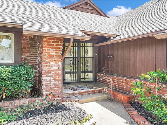 A one of a kind ranch home with historical significance. Personal Home of Delbert Jackson, which he designed and built. Delbert painted the famous Petroleum Mural that hangs in the Tulsa Airport and for many years hung in the Smithsonian Institute. This home features an original Delbert Jackson mountain mural above the living room bookcases. The house has charming alpine style woodwork in the main living room. It is a midcentury modern style home, in general, with charming alpine-style woodwork in the main living room. Bookcases and cottage style windows add to the whimsy of the room. Both the style of the fireplace and the design in the brickwork make a real statement. The Dining Room has French doors that lead to a private outdoor courtyard. There is a built-in bar and counter off the dining room as well. Large Middle bedroom has nice corner windows and a door to the backyard and makes a nice second living room or an office. Master has a private bath with shower and looks out on the courtyard. All the bedrooms are large with good storage throughout the house. Replacement Windows, Indoor Laundry Room, Large Fenced Yard, Quiet Neighborhood, Close to shopping, schools and expressways. A real Gem!