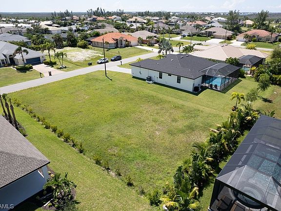 Great location and rare opportunity to own a home in Cape Coral with almost 1/2 acre! Many possibilities with the extra adjacent lot - keep as open space, build a garage for all your toys, or split and sell as a standard 80'x125' building lot. This 4 bedroom 3 bath modern open style floor plan will surely impress. Double glass door entryway, foyer opens up to the large living room with tray ceilings, dining area, plenty of room for entertaining. The kitchen is a dream featuring solid wood cabinetry, soft close hardware, Quartz counters, oversized center island, and stainless steel appliances. Other upgrades include impact windows and doors, 8' doors, 24"x24" porcelain tile, tray ceilings. Lanai area has a generous seating area, 12'x28' pool with heater and outdoor kitchen. Property is very close to Burnt Store boat ramp, Sirenia Park to launch kayaks and manatee viewing location, walking distance to Joe Stonis Park which offers pickleball courts, shuffleball courts, walking path with fitness stations, and Coral Oaks Golf Course is only a 10 minute drive. Home is being sold turnkey. Get it before lots are split!