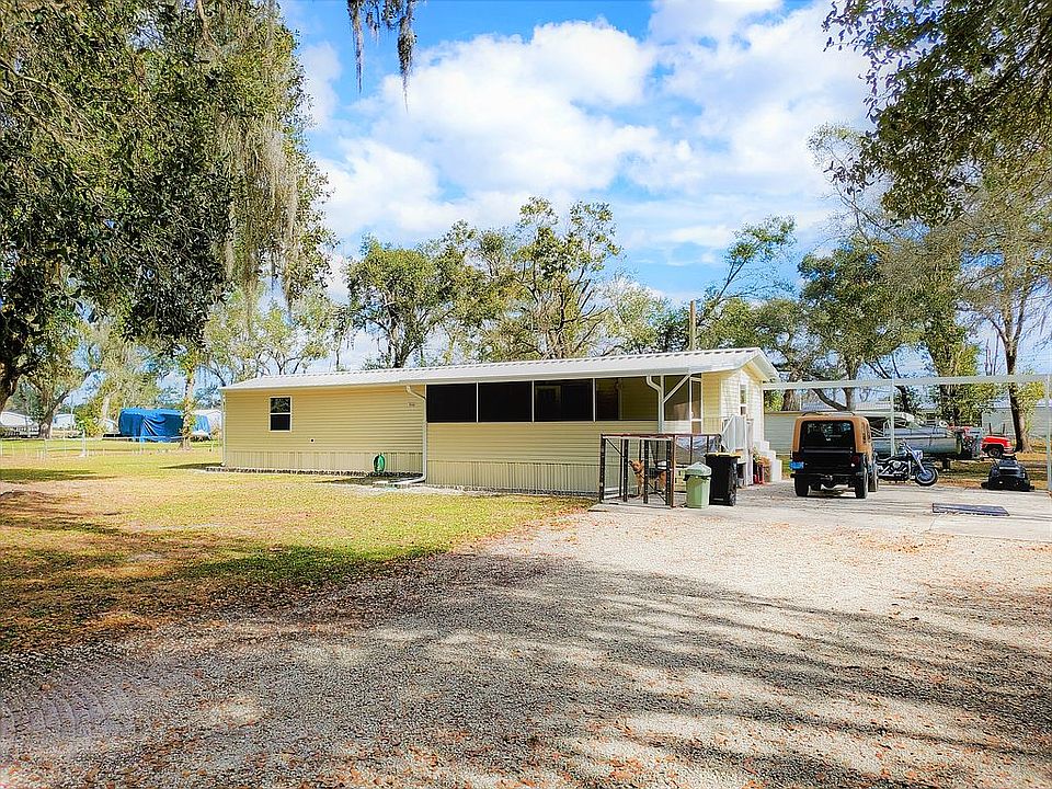 Come check out my extremely well-maintained 2/2 mobile home. I know it seems dated, but it would be hard to find something similar that is this solid and cared for. The property is almost an acre at 200 x 200 with approximately 1550 sq ft of heated living space. You will love to relax and enjoy the sounds of the nature on the 10 x 24 screened front porch. However, you could also sit out in the 7 x 32 screened back porch and enjoy watching the sunrise through the gorgeous oak trees. The roof over was done in 98', septic was redone in approximately 06', the well is 90', it is on county water with electric through Lakeland Electric. There is an inground pool that needs attention and I can have it resurfaced and fixed for another $5,000. All sizes and ages are approximate. Zillow's estimate was/is based on wrong facts. It had 0 bedrooms, 0 baths and only 840 sq ft with no land for their model pricing. I corrected the facts and they still haven't changed it from before.