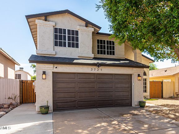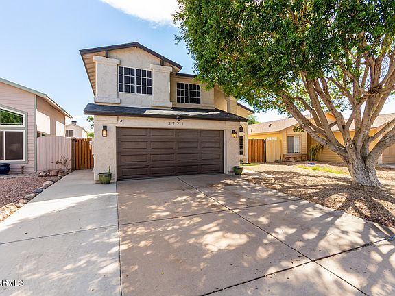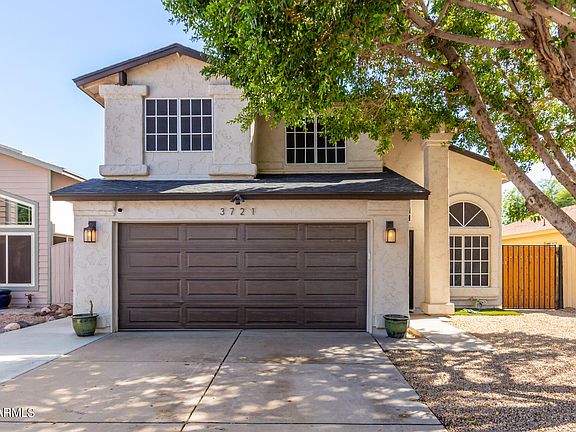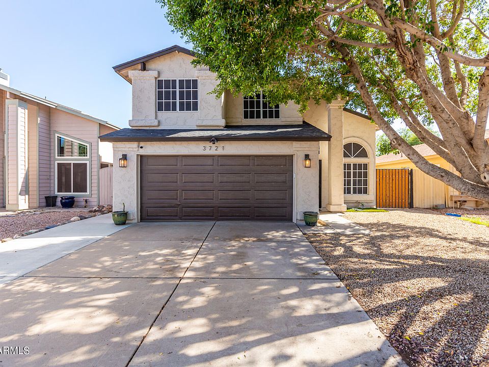 Remodeled home in North Phoenix! This beautiful two-story property tastefully blends style, functionality, and comfort. With 3 beds, 2.5 baths, and 2-car garage, it is the epitome of contemporary living. Discover a perfectly flowing living and dining room and an inviting family room with fireplace! Vaulted ceilings, fresh neutral paint, laminate and wood-look tile flooring throughout, and abundant natural light enhance the welcoming vibe. The impeccable kitchen boasts sleek SS appliances, quartz counters, wood cabinetry, and a breakfast area w/bay window. Moving upstairs, the bedrooms await! Main bedroom has a triple-wide closet w/built-ins and a full bathroom w/dual sinks. You'll love the tranquil backyard offering a covered patio, fire pit, storage shed, grassy area, and shade trees!