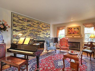 Spectacular Custom Estate exudes "Waterford" image. 5 bedrooms, 3.5 baths and offering approx. 3600 sq.ft. of luxury. Volume ceilings, dramatic spiral staircase and extensive wood flooring. Downstairs Guest Suite. Master Bedroom Retreat with sitting area and luxurious bath. Almost One Acre of Lush Grounds ideal for Vineyard or Tennis Court. Arbors, expansive lawn areas, private patios and lush gardens. Custom designed solar heated pool with spa.