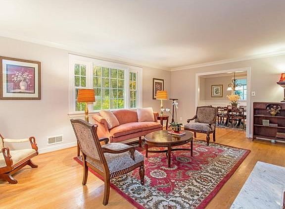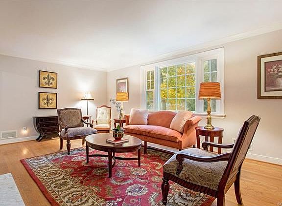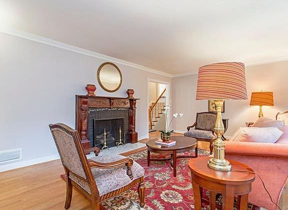 Located on a quiet, corner lot in Stratford Hills, this lovely brick home offers three levels of comfortable living space. The interior boasts an abundance of natural light and features a foyer that opens to the formal living room with crown moulding and stunning fireplace mantel. The dining room with crown moulding and wainscoting leads to the kitchen and includes an eat-in area with wood-burning fireplace. A large sun porch opens to the rear deck and garden and completes the first floor. The second level features a master bedroom with en-suite bath and double closet plus two additional bedrooms, a full hall bath and several large closets. A bonus level offers a finished attic, ideal for storage or a children's play area. The finished basement includes a large family room with fireplace plus a half bath, utility room and walk-out access to the garage and backyard. Exterior features include beautiful gardens, a circular driveway and a backyard deck perfect for entertaining. Home has newer windows, systems and roof. A must see!