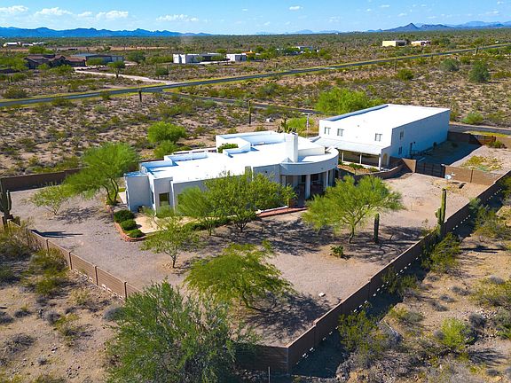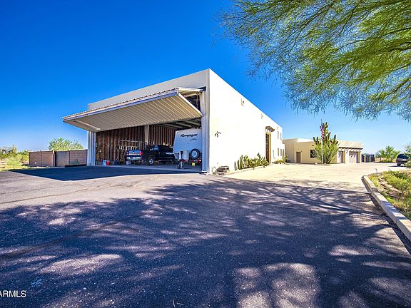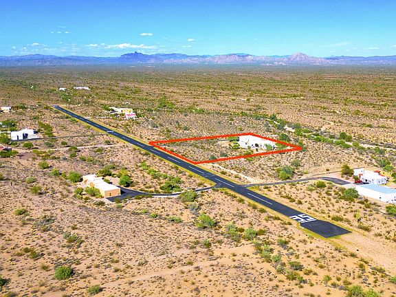 PILOT PARADISE w/ 2600' x 40' hard-surface runway! (Aircraft have right of way; exercise extra caution.) Taxi up to your approx 40'x60' hangar adjoining an approx 20'x40' guest quarters w/ kitchen & full bath, 2-rm office w/ full bath, & covered patio. This beautiful 2970 sq ft home features a large great rm w/ dining area; beautiful kitchen w/ knotty alder cabinets, breakfast bar & dining area; 3 bdrms (owner's w/ separate tub & shower, private toilet, walk-in closet); 1 bdrm w/ built-in desk & murphy bed; 2.5 baths; laundry w/ washer & dryer; oversized 2-car garage; front courtyard w/ fountain; large backyard w/ spacious covered patio & outdoor kitchen. Enjoy outstanding desert views from upper deck. This 3-acre property is conveniently located about 2.5 mi south of Hwy 74. A must see!