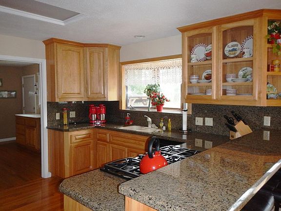 #1152 Beautiful 3 Bedroom 3 bath,hickory custom cabinets in kitchen and laundry, custom kitchen appliance's sunken living room with wood fireplace insert. 2 car attached garage and detached garage and shop. large back deck with french doors off dining and master bedroom. End of street for seclusion