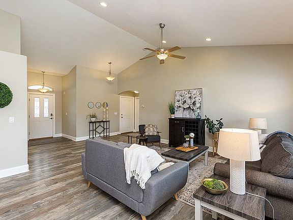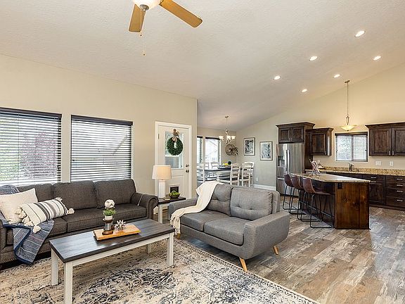 Brookwood Estates home has tons of storage and space. Large open concept floor plan with plenty of room for entertaining family and friends. Beautiful and freshly refinished cabinetry with granite countertops, vaulted ceilings, upgraded natural gas range stove, corner pantry, and an island with breakfast bar seating. Stainless steel appliances and faux wood blinds included. Lifeproof vinyl plank flooring upstairs and BRAND NEW carpet throughout the downstairs. New two-toned paint throughout the entire home. On main level, a master suite, bedroom, and laundry room with cabinets and countertop. Master bath has oversized double shower heads with a bench for relaxing and washing off the day. Dual his/her vanities, and a walk in closet with shelving. Second bedroom serves well as a well-lit office or a beautiful babies nursery. Has large walk-in closet. Guest bathroom has extra shelving, and also a linen closet. Downstairs a fully finished basement boasts an oversized family room, four more bedrooms, a full bathroom with dual vanities, and a separate toilet room. Bathroom built with a ton of extra counter and storage space. Rooms all have built in shelving in closets. Two more hall closets for even more storage. Yard is fully landscaped with vinyl fencing, and has a sprinkler/drip system. Oversize double-car garage. In-ground trampoline. Back patio is covered and large enough for a hot-tub, grill, and outdoor fireplace. RV/Boat parking on side that extends to the back side yard. Great for storing kids bikes, lawnmower, and trash cans. Vivint security system. Keyless entry. Front and back glass/screen doors. Doggy door. The very BEST neighborhood you will EVER find with a ton of kids and friends that have become family. Close to schools, restaurants, shopping, ATV/snow mobile riding, snow skiing, and easy highway access. No HOA. Move in ready