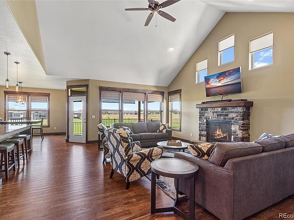 It's the views. It's the mountains. It's the natural sunlight in every nook & cranny. Spacious yet cozy open floor plan, 1 owner home. 4 car garage, epoxy floors, plumbed for gas as is the upper deck off the kitchen. Upgrades galore- see Addl docs. Our favs: white oak flooring, custom light & shade pkgs, huge walk-in shower, soooo much storage. Addl built-in storage rm off mud rm. Walkout basement. Builder's plans included. Grab your paddleboard or fishing rod. Boedecker Reservoir across the road. Len Hagler Res down the road. Minutes from Loveland and all the necessary amenities. It's a great place to be!
