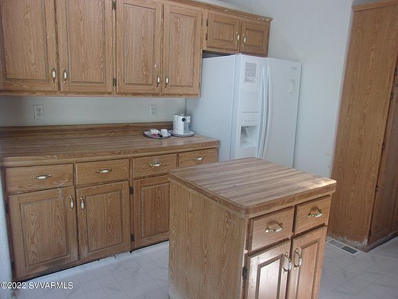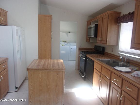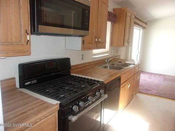 Camp Verde, This 3 bedroom 2 bath home built in 1996 is situated on a 0.28 acre lot. Open modern floor plan. Perfect starter home or investment. New roof installed in June 2022. Living room has a clear story window and vaulted ceiling. Kitchen/dining combo. Kitchen has a small island and lots of cabinets. Utility room has dedicated space for an upright freezer. Guest rooms are spacious and have ceiling fans. Guest bath has tub/shower combo. Master has walk-in closet and ceiling fan. Master bath has corner garden tub, separate shower and dual sinks. Home has skylights for that added light and airy feeling. Concrete patio is perfect for entertaining or would make a for a perfect carport. Large 12x16 Tuff Shed. Plenty of room for that RV and toys too! Property is open to all loan types.