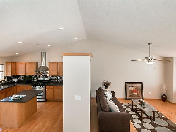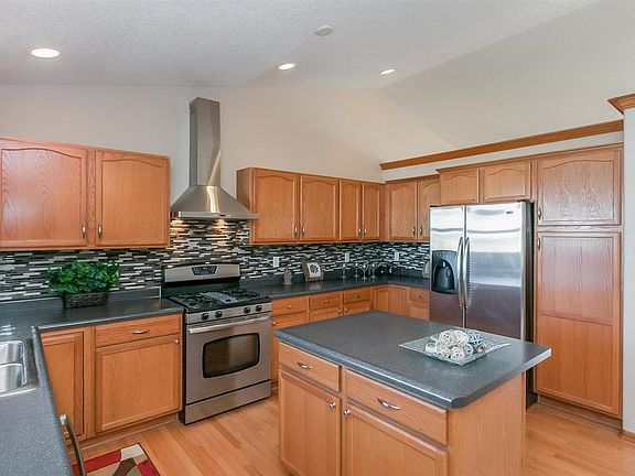 Fantastic 2 Story with some wonderful amenities located in an established east side neighborhood with a great fenced in yard! Special features include soaring cathedral ceilings; warm oak flooring through most of the main level; spacious kitchen that boasts shiny stainless steel appliances including a gas range/oven, Bosch dishwasher, upgraded hood vent, mosaic glass tile back splash, and great counter space including an island with breakfast bar; screened porch and patio; formal living room; first floor family room with a corner fireplace; 3 generous sized upper level bedrooms including a 16x16 master suite with vaulted ceilings, walk-in closet, and bath room; 6x10 first floor laundry room/half bath that comes with a front load Bosch washer/dryer; brushed nickel hardware and fixtures; new carpet; new roof in 2015; nicely decorated with warm colors; water softener and reverse osmosis drinking system; and tremendous potential for future expansion in the walkout lower level to add a 4th bedroom, bath room and family room along with a good sized storage room!