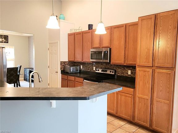 Well cared for stone and vinyl 2,507 square foot Colonial in the Herrington Place subdivision in the award winning Aurora School District with much to offer. You will first notice the inviting front porch offering great curb appeal. New carpet throughout the entire house (DEC 2021). Upon entering you will see an open floor plan that includes a highly desirable first floor master suite, family room and dining room. The kitchen includes an abundance of cabinets, stainless appliances (New Microwave DEC 2021), ceramic flooring, stone back splash, and an eat-in area that leads to sliders overlooking the tranquil wooded backyard and deck. The second level includes 2 spacious bedrooms and a large loft; perfect for an office or a quiet reading. This lovely home also includes a full, finished, recreation room with a full bath designed in neutral tones, with plenty of storage, just waiting for its new owners to bring life into it. Natural light shines throughout this home. Close to shopping, dining, outlet mall and interstate highways. Make this home #1 on your viewing list!