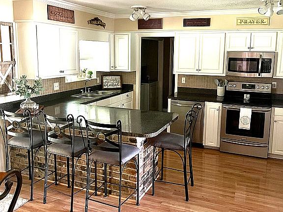 NEW ROOF 2020. Stunning does not begin to describe this massive and lovely home. Located centrally, off Leroy Stevens and Cottage Hill. Great proximity to Schillinger's, shopping, and the new Publix. Tucked away, you are greeted by a sprawling lot, and circle drive. The manicured lawn with shady trees offers privacy and ample parking. This gorgeous 2-story home has two large porches on the front. Southern Charm at its best! Upon entry, the expansive foyer offers a welcoming space. The large formal dining room and floor-to-ceiling windows allow for tons of natural light; Making it perfect for entertaining or holiday meals. The formal living room, currently a playroom, offers a multitude of options. Second living space, office, playroom/school room, lots of opportunities! The living room, features a yummy wood beam ceiling, tons of windows, neutral paint, and hardwood floors. Cuddle up to the fireplace during those sweet southern winters. The master suite is on the main level. Attached ensuite bathroom with double vanity, and lots of storage. The kitchen is at the heart of the home. White cabinets and breakfast bar, pantry, and stainless appliances. Also on the main level, a half bath, and laundry/mudroom, 2 car attached garage with additional workspace. Upstairs you'll find the remaining 4 bedrooms and 2 baths. A secondary master suite is located just up the stairs. With an attached sitting room and 2 walk-in closets. Guests have their own suite and upper front porch access. The size of these guest rooms, can't be matched! All with carpet and neutral paint, large windows, high ceilings and large closets. Enjoy your morning coffee outside on the covered back porch and listen to the trickle of the water feature in your little pond. The acre lot, under the shade of the large trees, is perfect for grilling and chilling. Football games, birthday parties...the large driveway and circle drive allow for ample parking. Completely fenced in and ready for Fido! Small shop in the back. Call your favorite Realtor today for your personal, private showing. Let's make this your new Home Sweet Home, Y'all!