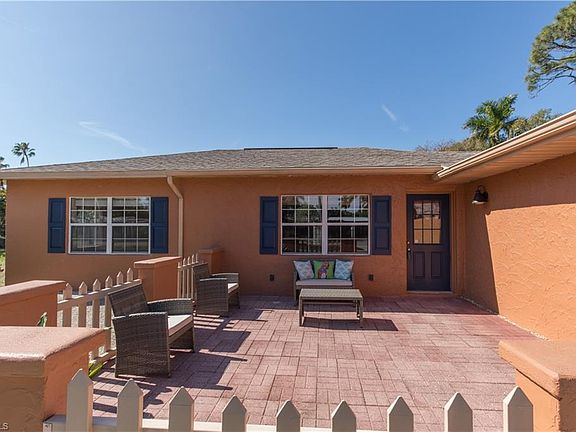 Easy to fall in love with this 3 bedroom home in wonderful neighborhood tucked away yet central location- just two houses down from charming neighborhood park & city pool. Warm & welcoming the moment you enter- front living room open to great kitchen w/pretty backsplash, wood cabinetry, center island/breakfast bar as well as dining area; full appliances including new microwave; & great window overlooking side yard. Large family room in rear of home w/access to lanai; Split plan offers front master bedroom w/master bath w/nice tiled shower; guest bedrooms on other side of home share updated guest bath; tile floors throughout most of home with laminate in bedrooms. Large screened lanai w/area that c/b summer kitchen w/cabinets, sink & granite counter; attached storage off rear patio; also detached shed w/electric. Home also has large front pavered porch -great to gather with friends or neighbors after a long day. Paver walk ways; little wooden deck behind shed; great big yard -- plenty of room for everyone! AC 2009; replumbed 2009; roof 2005; This home is ready to move right in!! Great location between McGregor & 41 - just south of Fort Myers Country Club - schedule showing now