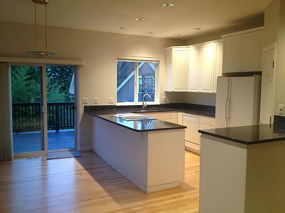Town Home with two master bedroom suites, each with own bath. Separate office on main floor, ideal for "work from home". Hardwood floors in kitchen and dining rooms. Decks off dining room and bedroom, with views of city and river. Laundry room upstairs with bedrooms, full washer and dryer. Kitchen furnished with refrigerator, dishwasher, electric range & walk in pantry. Also Central Air Conditioning, Central Vacuum, gas fireplace. Two car tandem garage includes work bench, shop space, abundant storage & closets. Yard maintenance and garbage provided. Convenient to OHSU Tram, downtown, and freeways. Available for viewing July 10. Owner provides trash & yard maintenance