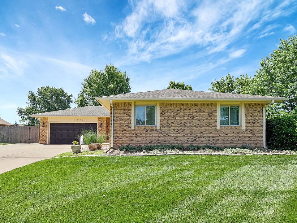 Back on the market with improved price! Beautiful full-brick ranch located on corner culdesac lot. As soon as you enter the home, you can see the pride of ownership. Tiled flooring into kitchen and dining room. All appliances stay - refrigerator, gas range/oven, built-in microwave, dishwasher plus newer washer and dryer in laundry room conveniently located right off kitchen. Dining area opens to covered patio and gorgeous back yard. Nice-sized living room electric fireplace. Primary bedroom with private tiled bathroom and 2 more bedrooms and 2nd tiled bathroom complete main floor. Basement features 2 bedrooms, another tiled bathroom and family room ready to be completed. Also, basement is plumbed for a wet bar. New coil in A/C, too. Corner lot with extra large driveway space which allows parking for guests and notice the extra large patio which runs the length of the home. Storage shed, sprinkler system, irrigation well, lush grass and beautiful mature trees! Haysville schools. Hurry - this won't last long!