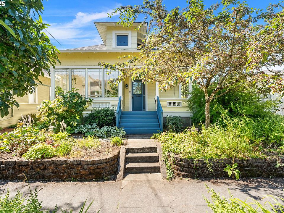 Vintage 1907 Hawthorne Bungalow with original character, charm and thoughtful updates. Enclosed front sun porch offers tons of windows and an abundance of light. As you enter, you'll be greeted by a formal foyer, lots of natural light and gleaming hardwood floors throughout. The living room and dining room are adorned with built-ins, bayed windows, and hardwood floors. Updated roomy period bathroom. Large open modernized kitchen and high ceilings throughout the home make this single-level home feel spacious. A tranquil south room views the Zen-like backyard and features a skylight, vaulted ceiling, and double closets. Fully fenced, gated on either side, the backyard flagstone path leads to a separate detached powered studio. The previous seller lovingly preserved the facade of the garage, providing both a storage for yard supplies, tools and gear, while adding a hidden studio behind. Updated roof, wiring, plumbing, high-efficiency furnace, windows, insulation, and sewer line. An excellent relationship with the neighbor allows mutual access of the shared driveway sporting a newer fence and gate, creating a feeling of even more privacy and sanctuary together. Future ideas could include converting the storage area of the garage to a bathroom, tapping into the sewer line from the driveway, and adding an interior door to the studio, or adding a half bath to the 3rd (back) bedroom. A+ location, steps to Hawthorne District, walkable to New Seasons + Fred Meyer, close to Downtown, Belmont Street, medical facilities & public transit. Home Energy Score = 5. Don't miss your chance to own a piece of history in the historic Hawthorne neighborhood! Welcome Home to 3722 SE Salmon Street | Portland, OR 97214 Offer received, deadline for offers Monday, August 4th @ 2pm. [Home Energy Score = 5. HES Report at https://rpt.greenbuildingregistry.com/hes/OR10218606]