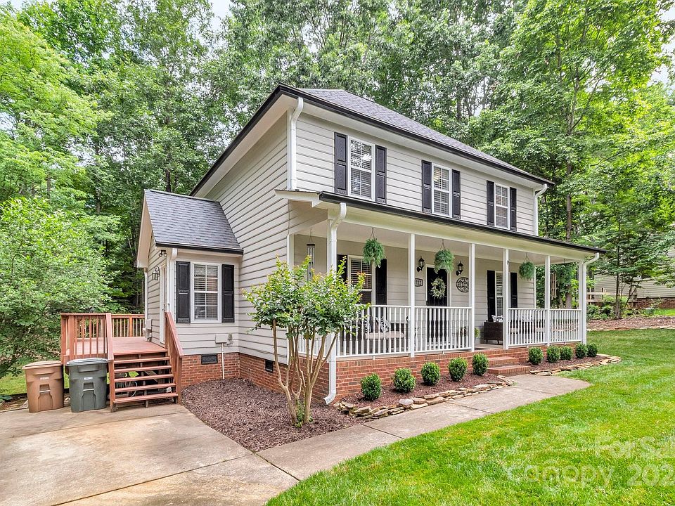 Discover serenity in this charming 3-bed, 2.5-bath home nestled on a near 1/2 acre wooded cul-de-sac lot in Waxhaw. With over 1700 square feet of living space, this meticulously maintained residence offers an ideal blend of comfort and style. Step inside to find LVP flooring throughout, complemented by crown molding in every room. The kitchen features granite countertops, new lighting fixtures and an eat-in breakfast area, while the four seasons sunroom beckons relaxation year-round. Enjoy cozy evenings by the wood-burning fireplace or entertain guests on the rear deck overlooking the lush backyard. Other highlights include an expansive front porch, full irrigation with brand new sprinkler heads, new roof (2023) and 10x20 shed (July 2023). Benefit from the peace of mind provided by an encapsulated crawlspace with a dehumidifier, termite bond, gutter guards, and NO HOA! Conveniently located near downtown Waxhaw's amenities, this is the perfect place to call home!
