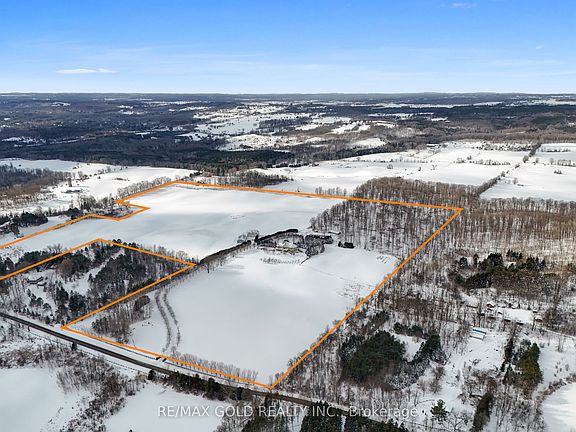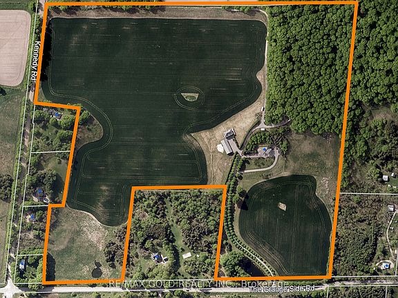 Welcome to 3722 The Grange Side Road, an exceptional 84-acre country estate offering a rare blend of privacy, natural beauty, and outstanding versatility. A long, tree-lined driveway winds through picturesque farmland, leading to an impressive natural stone bungalow perfectly positioned to capture sweeping rural views. The property comprises approximately 84 acres, including about 55 workable acres of gently rolling land, complemented by a tranquil pond near the entrance. This setting is ideal for agriculture, a home-based business, or multigenerational living. The main residence showcases quality craftsmanship with spacious, well-appointed interiors and a flexible layout offering three potential living areas, making it well suited for extended family arrangements or adaptable use. A standout feature is the detached stone-fronted, steel-clad workshop/garage, complete with three oversized 12-foot bay doors, a full four-piece bathroom, and an expansive 2,200 sq ft upper-level loft featuring three additional bedrooms and two bathrooms. An additional steel garage with four oversized doors and a secondary workshop/shed further enhance the property's functionality. Whether you are an entrepreneur seeking space for a business, a hobbyist requiring ample storage, or a family looking for room to grow, this estate offers unmatched flexibility. The land presents endless opportunities for farming, recreation, or future expansion. Set in a peaceful rural location while remaining within a convenient drive to nearby towns and amenities, this is a truly signature property that seamlessly combines natural beauty with practical, adaptable living.