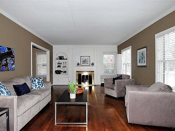 Absolutely Charming 3 BR, 2.1 BA Brick Georgian Featuring Many Improvements/Updates and Beautiful Architectural Details. Freshly Painted in Today's Designer Colors. Inviting Living Room w/ Fireplace, Crown Molding and Built-Ins Opens to Dining Room w/ Built-Ins and Crown Molding. Updated Kitchen w/ Spacious Breakfast Room Features Built-Ins, Stainless Steel Fridge and Granite Counter Tops (2012). Large Master Bedroom (18x13) w/ Attached Bath and 2 Closets. Finished Lower Level Rec Room w/ Paneling, Stone Fireplace and Full Bath. Hardwood Floors Throughout. Landscaped Rear Yard w/ Patio and Screened-In Porch. Many Updates:New Hot Water Tank (2016), Front Brick Walkway and Rear Steps (2016), Garage Roof (2011) and Garage Doors (2014). Boiler (2010). Close to New Van Aken District, University Circle, CWRU, Hospitals, Shopping, Restaurants and Schools.