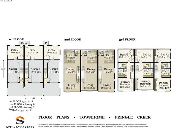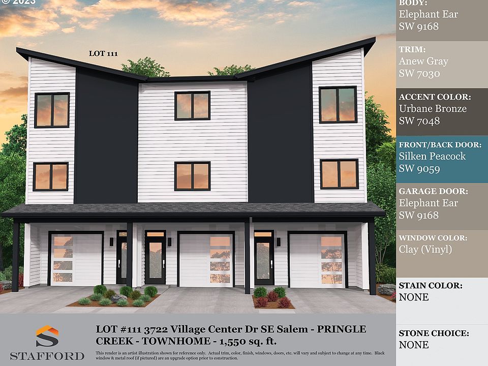 New townhomes in the Pringle Creek Community. 3rd bedroom/office space on 1st level. The kitchen features stunning cabinetry, rich slab quartz countertops, and SS appliances. Rear patio off of 3rd bed/office space. 1 car garage. One of the selling members is related to an Oregon real estate licensee. Estimated completion date 6/2/23.