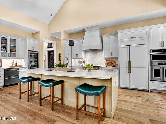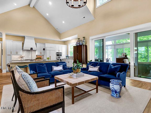 Like-new custom home built in 2023 by renowned Vahue Building, nestled deep within the most desirable & peaceful section of the riverfront community of River Bluffs. This meticulously maintained property offers thoughtful upgrades throughout, from tall ceilings & engineered wood flooring to elegant crown molding & chair rail accents. The heart of the home is a chef's dream: a gourmet kitchen designed by a nationally recognized kitchen designer featuring quartzite countertops, 6-burner natural gas range with hood, 5-option steam oven, abundant storage, & a spacious walk-in pantry. Enjoy seamless indoor-outdoor living with a bright sunroom (complete with remote-controlled shades) that opens to an oversized Trex deck—perfect for entertaining. Relax on the front porch while taking in breathtaking sunsets or unwind in the luxurious Primary Suite with a soaking tub & separate shower. Additional highlights include formal & informal eating & sitting areas, upgraded lighting, plantation shutters, copper roof accents, FROG with full bath—ideal for guests or multi-generational living, Rinnai on-demand hot water system, whole-house generator, encapsulated crawlspace with dehumidifier offering great storage. A study with built-in closet adds even more versatility in this mostly 1 level living home. Situated in one of River Bluffs' most desirable areas, enjoy top-tier community amenities including pools, fitness centers, half mile riverwalk, boat ramp, fire pit, clubhouse, community farm, boat/trailer storage, tennis, pickleball, basketball, dog park and vibrant social clubs. Residents especially love the abundant green space and plentiful trees in the neighborhood. This home offers timeless craftsmanship, thoughtful design, and the perfect blend of comfort & community. All this & only 15-20 minutes to premiere shopping & dining at Mayfaire & The Forum, Historic Downtown Wilmington, medical & the airport. A rare opportunity you won't want to miss. Boat slips available separately