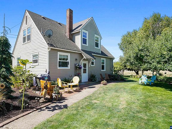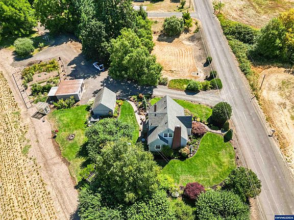 Charming, open plan farmhouse with wood floors and lg picture windows. Primary bed on main floor. Fully landscaped, irrigated yard, enjoy the shade of mature apple trees and spectacular sunsets. Ideal as a small hobby farm with chicken coop, shop and fruit trees the property is surrounded by farm land and a nursery. Basement has plenty of storage. Office and family room in full basement is not included in SF. Just outside city, lower taxes. Minutes from Lebanon or I-5. Hot tub included with sale!