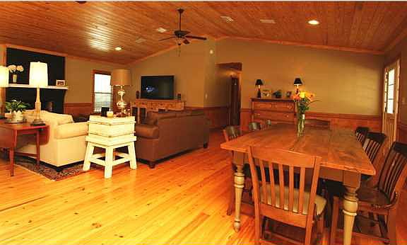 Home completely redone in 2013! Open floor plan w/vaulted v-joint wood ceilings! Per seller in 2013: updated kitchen w/concrete countertops, stainless appliances & bar. Heart pine floors. Double pain windows, roof, concrete driveway, carpet (bedrooms), Paint (in & out), 2 wood blinds, completely rewired. insulation (low utility bill) covered back patio. Surround sound, fenced yard, double carport