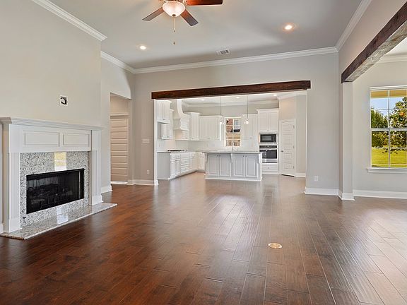 Introducing the Blanchard floor plan into Copper Mill! Take advantage of this gorgeous home in Clubview Estates in Copper mill as it is on the last few remaining lots in this exclusive gated section! This one story home features four beds and three full baths with an open and spacious layout with over 2300 sq feet! Enter this home from the very inviting front porch complete with exposed cypress beams. Once inside, you will enter into the foyer which leads you into the very spacious living room and kitchen and separate dining which are all separated by exposed interior cypress beams. The gourmet kitchen features stainless appliances by GE including a gas range and built in microwave, custom painted wood cabinets, large center island with hanging pendants, 3 cm granite and an arctic white subway backsplash. The master suite is tucked away on the rear of the home with a spa like bath including dual vanities, separate tub and custom job built shower with a seamless door, satin nickel plumbing and a HUGE walk in closet. Beds 2 and 3 are located off the garage entry and these rooms share a full bath which is located across from the office! Bed four is on the opposite side of the home with a full bath located in the hallway. Large walk in laundry room with a storage closet within. This home features 18x18 porcelain tile, engineered wood flooring, satin nickel lighting and plumbing! Professionally landscaped and fully sodded yard. Home is READY NOW!! Seller provides 2-10 warranty. Seller pays up to $4,000 towards closing costs with preferred partners. Community pool, tennis courts & playground add to this beautiful Golf Course Community... Come see what the Copper Mill Lifestyle is all about!