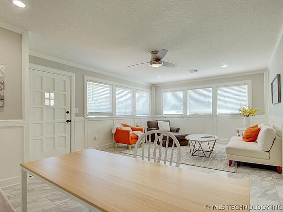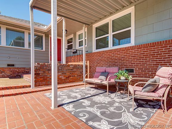 Beautifully remodeled midtown home perfect for entertaining! (See highlight video!) Washer, Dryer, Fridge (new in 2020) stay with the home!! New Roof in 2020! New doors from 1 1/2 car garage to home and garage to yard. Newer privacy fence and landscaping. New capacitor and refrigerant refill on AC unit in spring of 2022. Freshly painted ceilings. VERY LARGE Florida Room on the front of the home can be used as a game room, sitting room, coffee/breakfast area, library, office or a combination! In addition to the sunroom, there are 3 bedrooms, 1.5 baths, and an open concept kitchen/living/breakfast nook. The oversized kitchen island has storage and can fit 4 barstools. (There is also a pass through window into the sunroom.) The kitchen has newer stainless steel appliances (gas stove), newer cabinets and countertops, newer sink/faucet/fixtures, and more! The living room has large windows overlooking a very LARGE covered back patio/deck. The deck is right off of the living room, creating a beautiful extension of living space from indoors out...great for outdoor gatherings! Outside, you'll also find an outbuilding/garden shed, fire pit, grassy areas and cornhole area or extra covered area for storage. There is one large bedroom and two other average sized bedrooms, one with an updated half bath. The spacious hall bath has dual sinks, bathtub/shower combo and has also been updated. This home is close to conveniences & I-44. It is 8 minutes to the Gathering Place and less than 3 miles to Riverside Trails. Great location, great home! Let's make it yours!