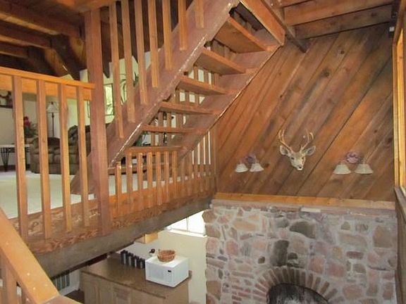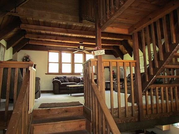 Great Modified A-frame cabin in the woods. Multi level, lots of rustic wood interior, stone fireplace, newer updated kitchen with an oversized 1 car attached garage. 2 separate loft bedrooms, yet very open to all levels. A must see to truly appreciate. Imagine spending your days enjoying the cool summer breezes of mountain living. Propane furnace is not currently connected to gas. Most furniture will convey at no additional value to buyer.