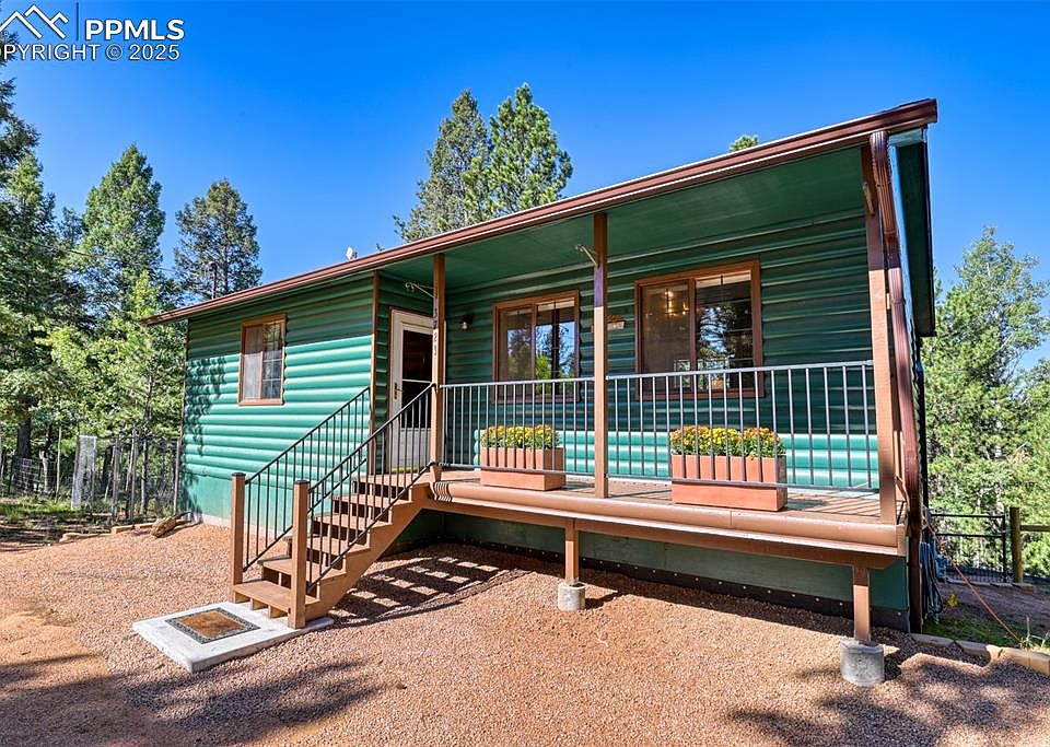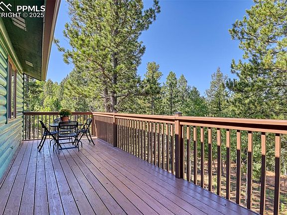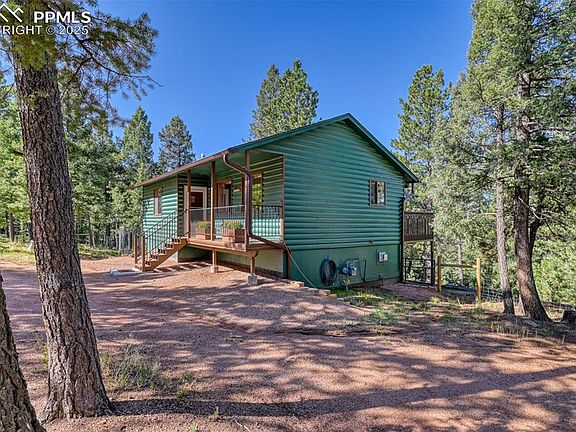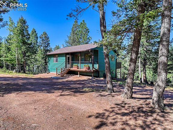 Nestled among the trees on over 2 acres, this forest retreat is waiting for you! Come explore this beautiful mountain treasure and discover a cozy home with gorgeous natural wood throughout the main level. Enter the great room with vaulted ceilings and delight in the woodland views through every window! The spacious back deck is an ideal perch for cloud gazing or observing wildlife while grilling a summer feast or savoring morning coffee. On chilly winter nights the inviting lower-level family room offers peaceful space for relaxation or warming toes by the gas stove. A convenient walk-out through the laundry/mud room opens to a sizeable back yard with chain link fence. Hens and hooved companions (2) are also welcome to settle in the loafing shed! Options abound in the enclosed carport/outbuilding - create a workshop, store toys, and enjoy the included wood burning stove! A newer roof, exterior paint, LVP flooring, and front porch railings (all within the last few years) are just some of the many appealing features of this charming home. For outdoor enthusiasts, the nearby OHV Divide trail system is one of the largest around, and shopping and entertainment are a short trek to Woodland Park on county-maintained neighborhood roads. Welcome to your Colorado mountain oasis!