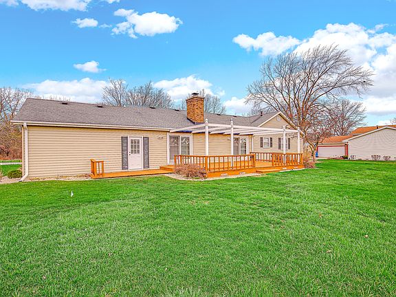 Opportunity knocks with this well-built, sprawling 1,746 sq ft ranch on a generous 1/2 acre lot! Full of character and potential, this solid 3-bedroom, 1.75-bath home offers a fantastic layout and great bones-just waiting for your personal touch. Step inside to find a formal dining room, an eat-in kitchen with all appliances included, and a spacious living room. The inviting family room features a cozy fireplace and opens to an expansive deck-ideal for relaxing or entertaining guests. The primary bedroom includes two separate closets and its own 3/4 bath. Two bedrooms showcase hardwood floors, with possible hardwood under the flooring in the primary bedroom. Downstairs, the partial unfinished basement offers storage and project space-and includes a washer and dryer for your convenience. There's also a crawlspace and an attached 2-car garage for added functionality. Situated on a peaceful lot just minutes from IL-394, this home blends quiet living with commuter-friendly access. Solidly built and filled with opportunity.