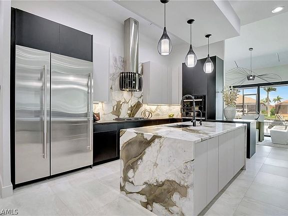 * Brazilian Macchia Vecchia Quartz countertops and built-in Luxury JennAir appliances adorn the gourmet