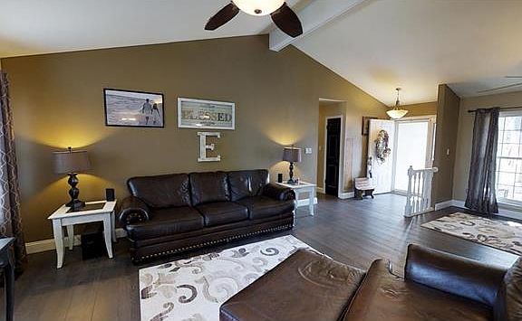 Welcome home to this 3 bed 2.5 bath home on a cul-de-sac. Wide open vaulted ranch with remodeled kitchen to include MAPLE shaker style cabinets, GRANITE tops, smooth top stove, center island, double ovens and ceramic tile floors. Main floor laundry! REAL HARDWOOD flooring in dining room, breakfast room, living room and hallway. 6" baseboards though out. Newer HVAC & TRIPLE PANE windows make this home's energy bills LOW! Updated hall bath. Master bedroom suite has walk-in closet, access to deck, private bath w/sep. tub & shower. FINISHED LOWER LEVEL offers another place to entertain. There is a gas fireplace in the entertainment room, unofficial bedroom, workout/hobby room and still enough room for storage. Newer private deck overlooking wooded backyard with great views of fireworks on Independence Day. Large front yard and almost private street plus, this home is conveniently located to shopping and commuter routes. Don't forget to check out the 3D TOUR!