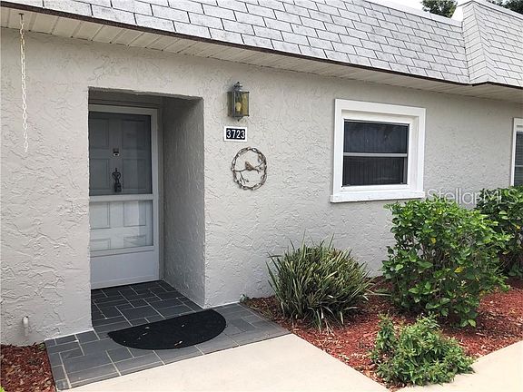 Lovely 2/2 Villa located in Seven Springs Golf and Country Club, New Port Richey's best kept secret. The kitchen features a breakfast bar and a stackable washer and dryer. The Living/ Dining combo is very spacious and bright. In the Master bedroom you will find an en suite bath with updated shower, a nice size walk in closet and a built in vanity table, which could also be used as a desk. The second bedroom has an ample sized closet and the 2nd bath has been nicely updated. Out back you have a lovely patio that overlooks the 14th Fairway. such a beautiful and peaceful view. This home is being sold fully furnished, so just bring your suitcase and golf clubs. This particular building has an optional Social Membership which allows you the use of the clubhouse, a choice of two pools; one of which is heated, tennis courts, work-out room and all Member functions.